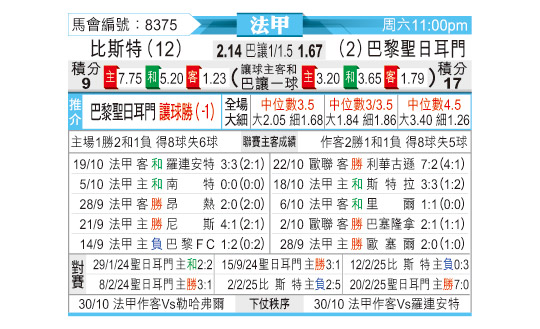 [法甲] 布雷斯特vs巴黎圣日尔曼