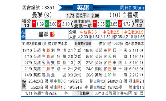 [英超] 曼彻斯特联vs布莱顿